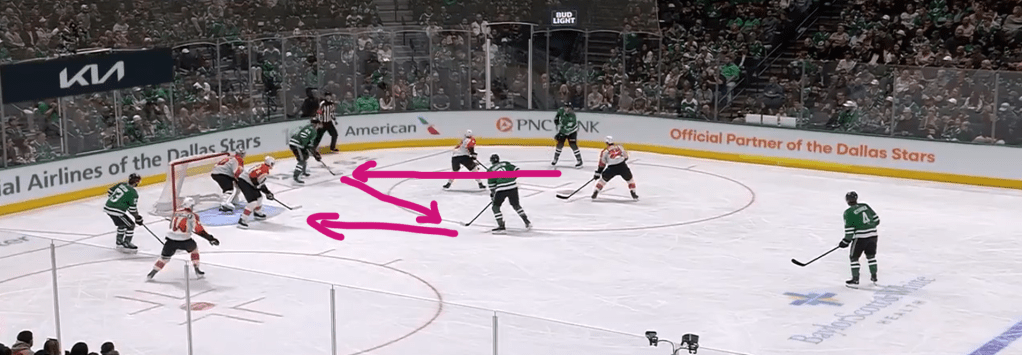 Deux joueurs des Flyers sont mal positionnés mais imaginez que la rondelle circulait rapidement avant que j’arrête l’image.