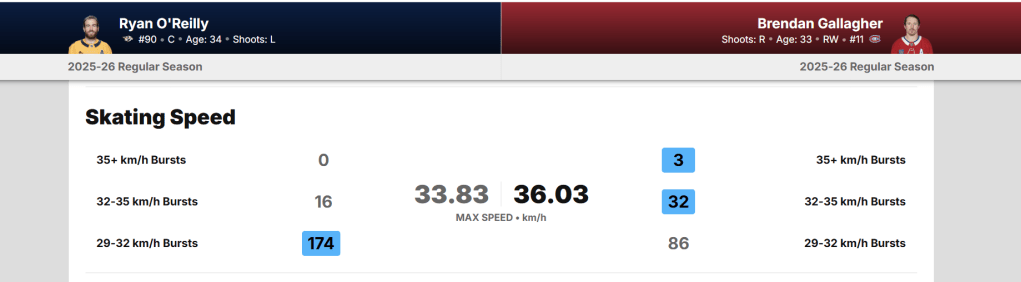 Je suis donc allé consulter les statistiques de NHL EDGE… O’Reilly est pire patineur que je pensais.